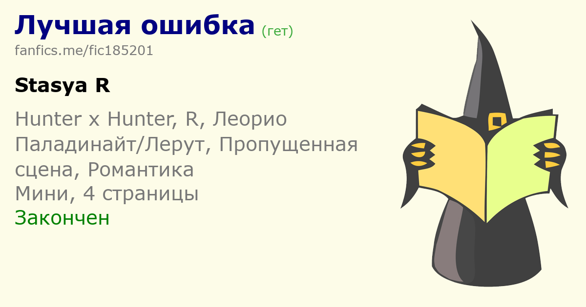 | EnniNova Это просто пропущенная сцена из канона. Лерут была экзаменатором, они с Леорио играли, называя факты друг о друге, которые нужно было потвердить или опровергнуть. Так вот, Лео ошибся, назвав Лерут мужчиной, и проиграл раунд. Ну а в моем тексте проверка)) Лерут такая и есть, разводить и получать удовольствие - ее конек. Надо было тебя в "Диагностику" отправить, там как оридж хорошо читается. | |